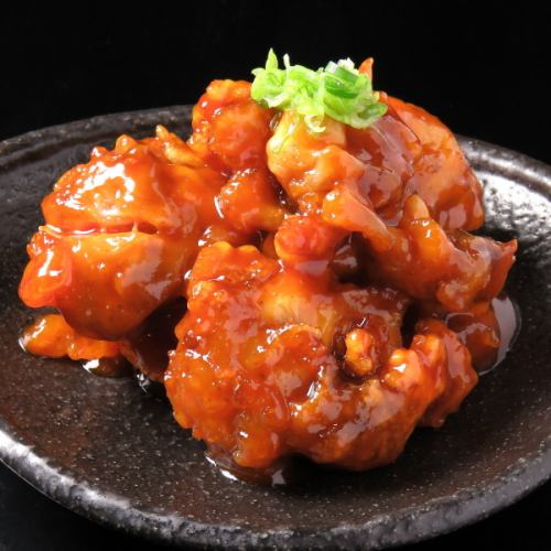 辛い物好きにはたまらない!韓国式のから揚げですカリッとおいしい韓国でも大人気チキン☆時間が経ってもカリッとしていて持ち帰りにもお薦め!ピリ辛でもほのかに甘いソースが後を引きます!